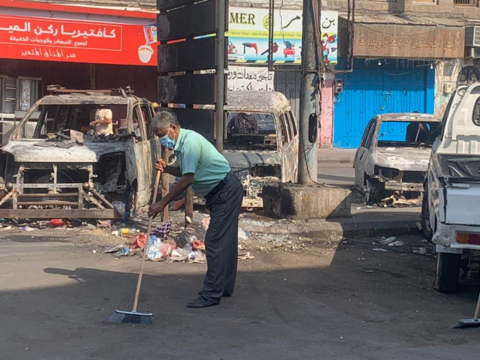 بادرت القيادة المحلية للمجلس الانتقالي الجنوبي في مديرية صيرة بالعاصمة عدن، اليوم الثلاثاء، برفع مخلفات أحداث مدينة كريتر.