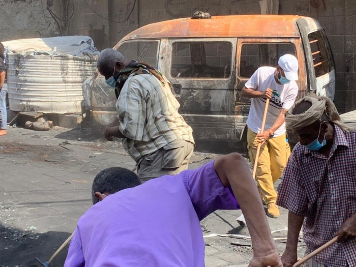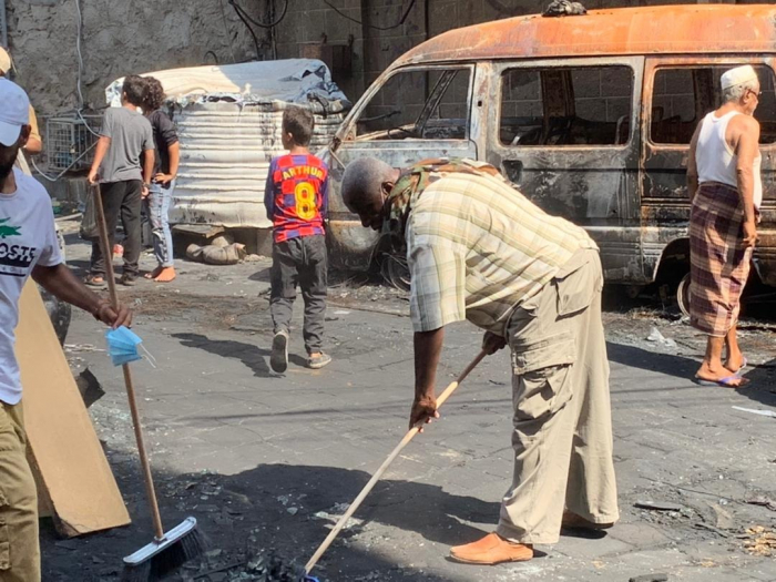 انتقالي صيرة يشارك في رفع مخلفات أحداث كريتر