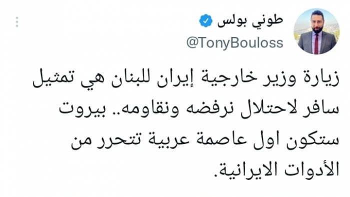 طوني بولس: زيارة وزير خارجية إيران لبيروت مرفوضة