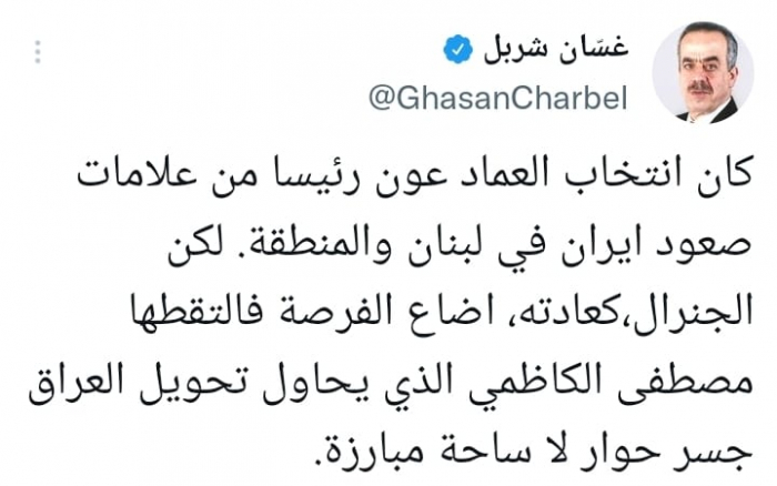 رأى الكاتب الصحفي غسان شربل، أن الرئيس اللبناني أضاع فرصة مهمة لجعل لبنان جسرا وليس ساحة نزاع، ملمحا إلى ارتباطه انتخابه بنظام ملالي طهران.