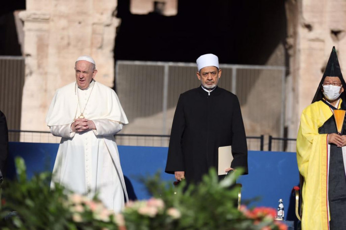شيخ الأزهر وبابا الفاتيكان وميركل يختتمون الاجتماع الدولي الصلاة من أجل السلام