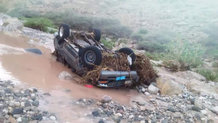 بالتزامن، جرفت السيول شاحنة في وادي بله بمديرية الملاح، خلال محاولة سائقها عبور السيل، بحسب مصادر محلية، مؤكدة انتشال السائق، وفقدان مرافقين كانا على متن الشاحنة.
