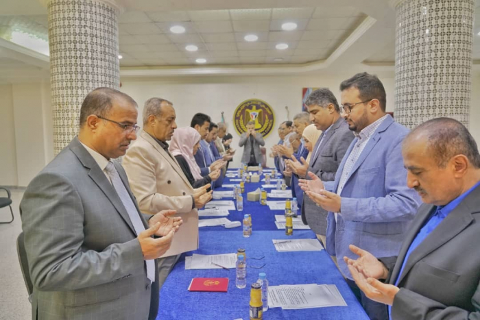 ووقف الحاضرون في الاجتماع، برئاسة أمين عام المجلس، محافظ العاصمة عدن، أحمد حامد لملس، حداد على أرواح الشهداء.