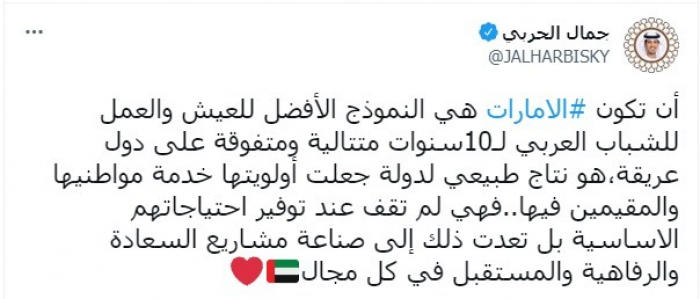 الحربي: هذه أسباب اختيار الإمارات الدولة الأفضل للعيش