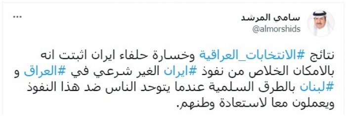 وضرب مثالا بنتائج الانتخابات العراقية، قائلا: "نتائج الانتخابات العراقية وخسارة حلفاء إيران أثبتت أنه بالإمكان الخلاص من نفوذ إيران غير الشرعي في العراق ولبنان بالطرق السلمية".