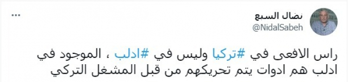 وكتب في تغريدة عبر "تويتر"، اليوم: "رأس الأفعى في تركيا وليس في إدلب".