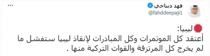 اعتبر المحلل السياسي السعودي فهد ديباجي، أن استمرار الوجود التركي والمرتزقة، يفسد أي مبادرات من شأنها إنقاذ ليبيا.