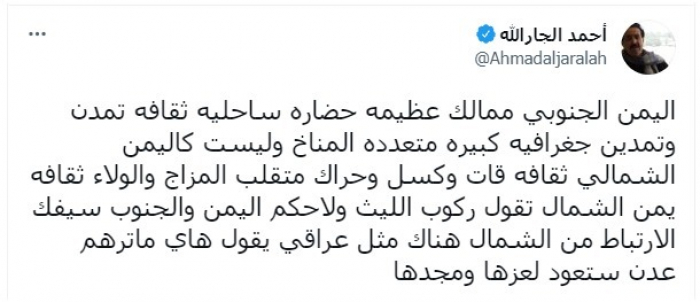 الجارالله يكشف الفارق الكبير بين الجنوب واليمن