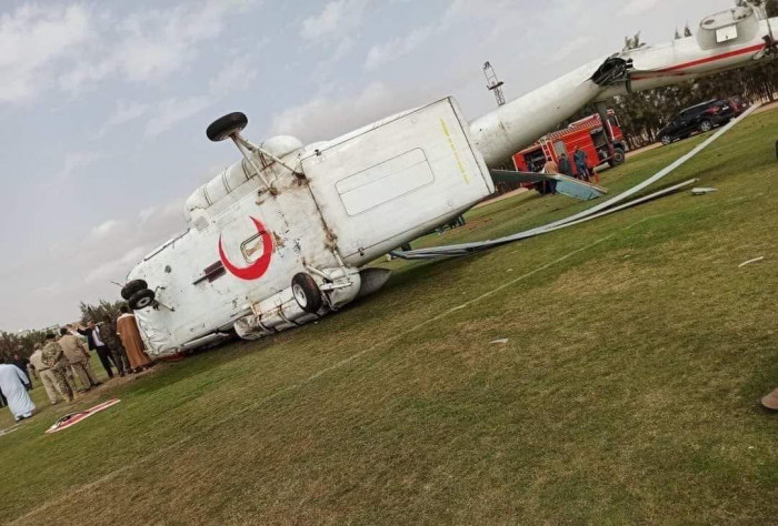 تحطمت طائرة مروحية تقل سيولة نقدية، اليوم الأحد، عقب هبوطها اضطراريا في مدينة ترهونة غرب ليبيا.