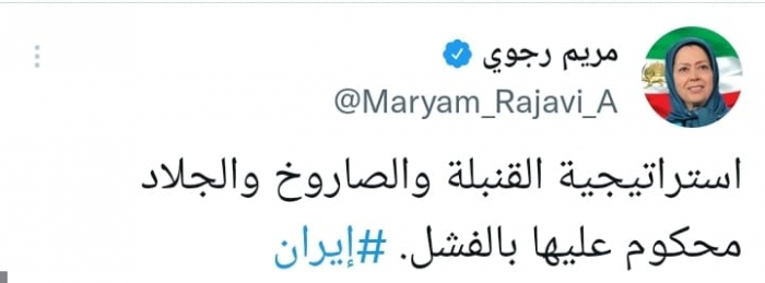 أكدت زعيمة المعارضة الإيرانية، مريم رجوي، أن استراتيجية نظام ملالي طهران واعتماده على القوة العسكرية مصيرها الفشل لغياب العدالة وإخضاع الشعب للجلادين.