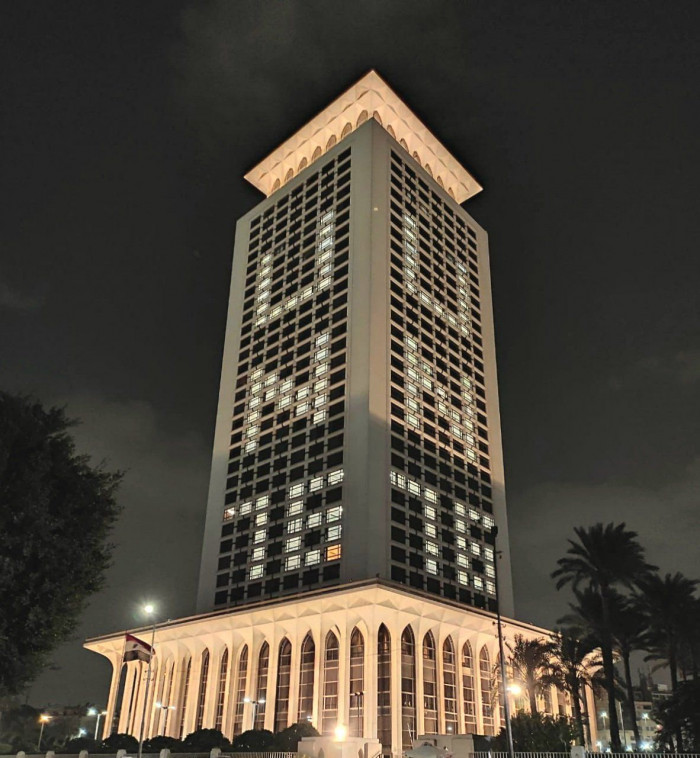 إضاءة مبنى الخارجية المصرية احتفالا بمرور 76 عامًا على إنشاء الأمم المتحدة
