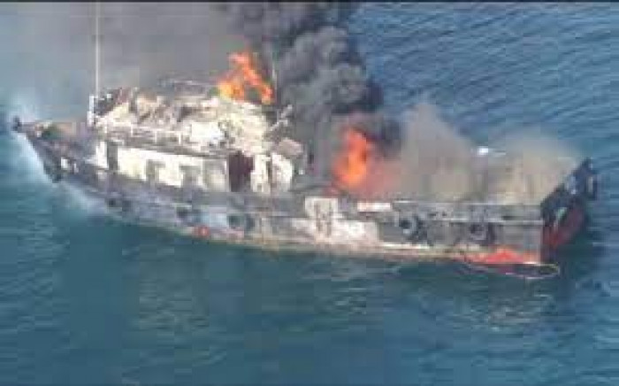 انبعاث غازات سامة من سفينة شحن مشتعلة قبالة سواحل كندا