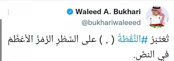 وكتب السفير السعودي في لبنان وليد البخاري، في تغريدة على حسابه بموقع التدوين المصغر تويتر، اليوم: "تُعْتَبَرُ النقطة ( . ) على السَّطْرِ الرَّمْزَ الأعْظَمَ في النصِّ"، في إشارة إلى نهاية مرحلة في العلاقات بين البلدين.