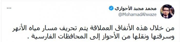 هاجم الصحفي محمد مجيد الأحوازي، نظام الملالي، بعد إنشاء أنفاق ضخمة لسرقة مياه أنهار الأحواز وتحويل مسارها إلى المحافظات الإيرانية.