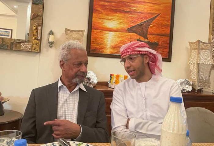 وكتب في تغريدة عبر "تويتر"، اليوم: "لقاء جمعني مع عمي الدكتور عبدالرزاق بن قرنح الحائز على جائزة نوبل للآداب وكان لقاء عائلي بحت".