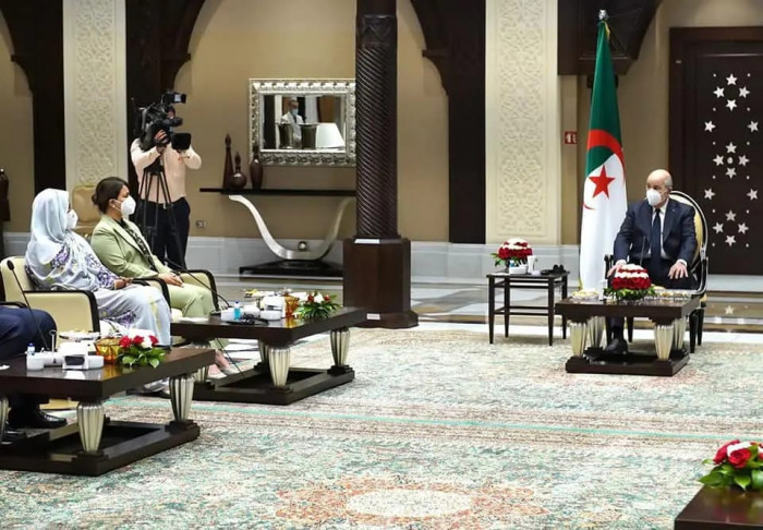 اجتمع الرئيس الجزائري عبدالمجيد تبون مع وزيرة الخارجية الليبية نجلاء منقوش، لبحث العلاقات الثنائية بين البلدين.