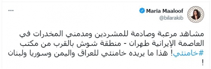 شددت الإعلامية اللبنانية ماريا معلوف، على أن نشر المخدرات بالمجتمعات العربية، سلاح النظام الإيراني لتدمير الدول العربية.
