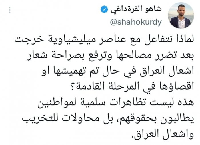 حذر الكاتب الصحفي شاهو قرة داغي من محاولات المليشيات العراقية الموالية لنظام ملالي طهران إشعال فتنة في العراق بعد خسارتها في الانتخابات النيابية.
