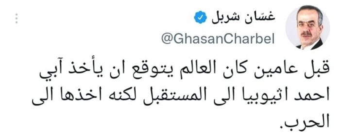 شربل: آبي أحمد يدفع إثيوبيا للحرب وليس المستقبل