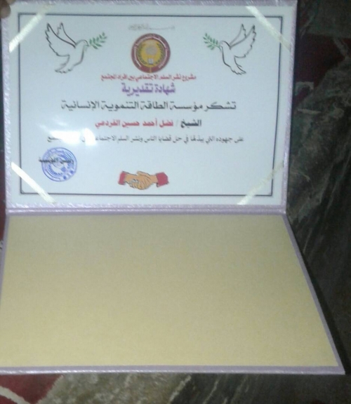 كما يهدف المشروع الى عمل دورات للشخصيات الإجتماعية لتاهيلهم اكثر في جوانب حل القضايا والمشاكل بين المواطنين .