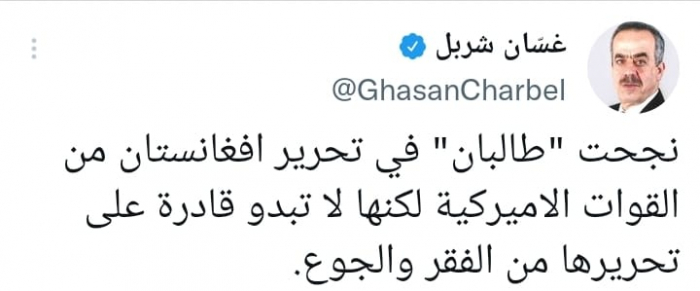 هاجم الكاتب الصحفي غسان شربل، حركة طالبان الإرهابية، مشيرا إلى أنها سيطرت على أفغانستان بينما لا تستطيع توفير الغذاء لشعبها.