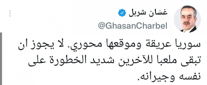 وأشار في تغريدة على حسابه بموقع التدوين المصغر تويتر، اليوم إلى أن: "سوريا عريقة وموقعها محوري".