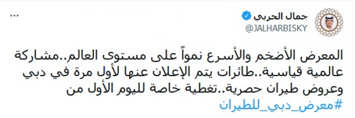 الحربي عن معرض دبي للطيران: الأضخم في العالم