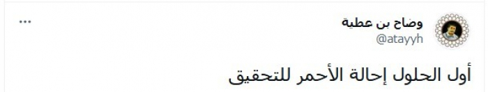 جاء ذلك في تغريدة عبر "تويتر"، اليوم، قائلا: "أول الحلول إحالة الأحمر للتحقيق".