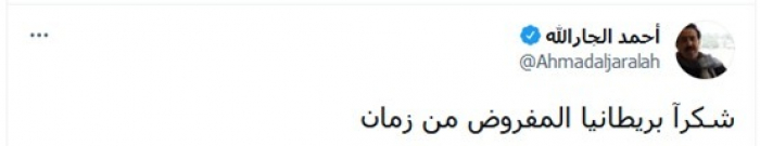 وكتب في تغريدة عبر "تويتر"، اليوم: "شكرا بريطانيا المفروض من زمان".