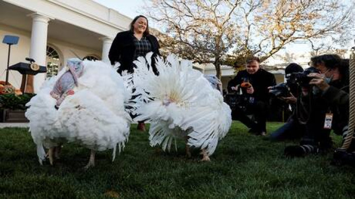 أصدر الرئيس الأمريكي، جو بايدن، أمس الجمعة، عفوًا عن الديكين الروميين البيضاويين من ولاية إنديانا بيانت بيتر وجيلي في حديقة الورود بالبيت الأبيض، بتقليد متبع في عيد الشكر منذ عقود.