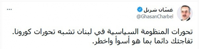 هاجم الكاتب الصحفي اللبناني غسان شربل، المنظومة السياسية في لبنان، واصفا قراراتها السيئة والمفاجئة بـ"تحورات فيروس كورونا".