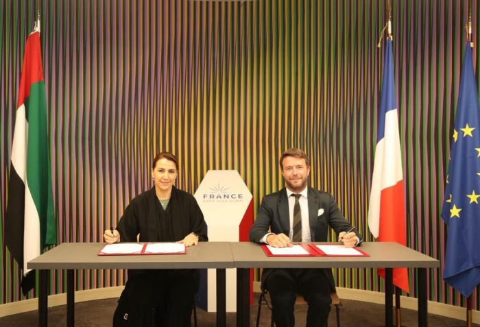 وقعت مريم بنت محمد المهيري، وزيرة البيئة الإماراتية، مذكرات تفاهم مع الجانب الفرنسي، خلال زيارة الرئيس إيمانويل ماكرون.