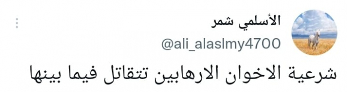 وأوضح في تغريدة على حسابه بموقع التدوين المصغر تويتر، اليوم أن: "شرعية الإخوان الإرهابيين تتقاتل فيما بينها".