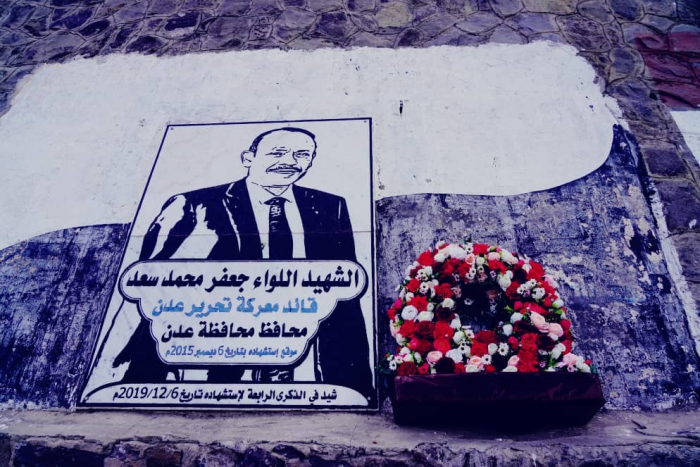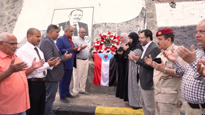 في الذكرى السادسة لاستشهاده، وضع فضل الجعدي، نائب أمين عام المجلس الانتقالي الجنوبي، اليوم الاثنين، إكليلًا من الزهور بموقع استشهاد اللواء جعفر محمد سعد المحافظ الأسبق للعاصمة عدن في مديرية التواهي.