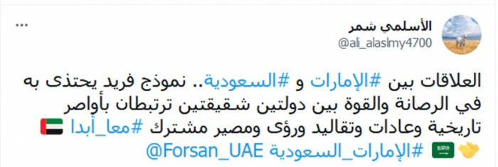 واختتم تغريدته بهاشتاجي: "معا أبدا، الإمارات السعودية".