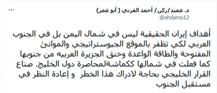 القرني يكشف أهداف إيران الخبيثة من الجنوب العربي