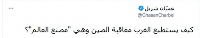 سخر الكاتب الصحفي اللبناني غسان شربل، من العقوبات الغربية على الصين، بعدما مدّد الاتحاد الأوروبي مؤخرا العقوبات المفروضة ضد بكين حتى ديسمبر 2022.