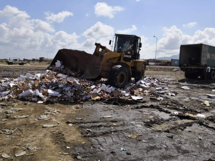 إتلاف حاوية من الفاصوليا الفاسدة في ميناء عدن