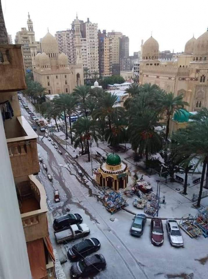 شهدت محافظة الإسكندرية المصرية ظاهرة نادرة وفريدة من نوعها حيث تساقطت الثلوج في الإسكندرية، في ساعة مبكرة من صباح اليوم الإثنين، على مناطق متفرقة من المحافظة، وذلك بالتزامن مع موجة طقس سيئ تشهدها عروس البحر المتوسط.