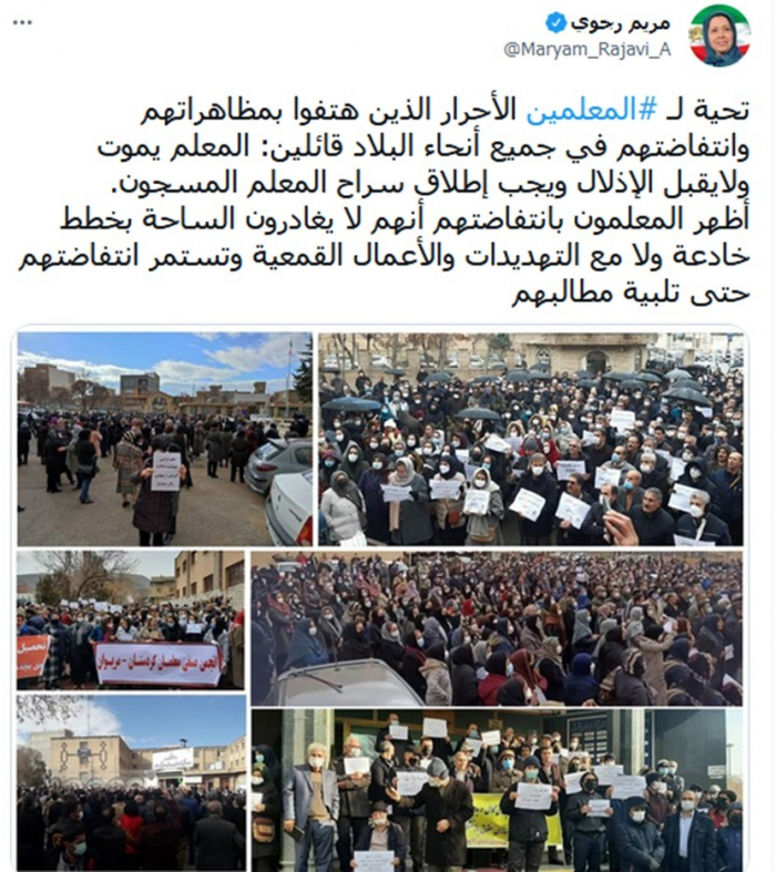 رجوي تجدد التحية للمعلمين المنتفضين ضد الملالي