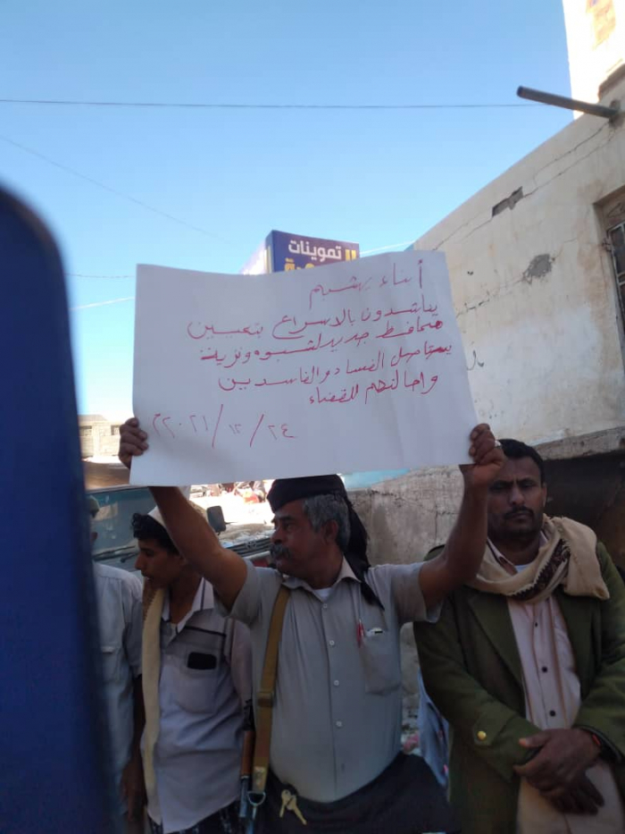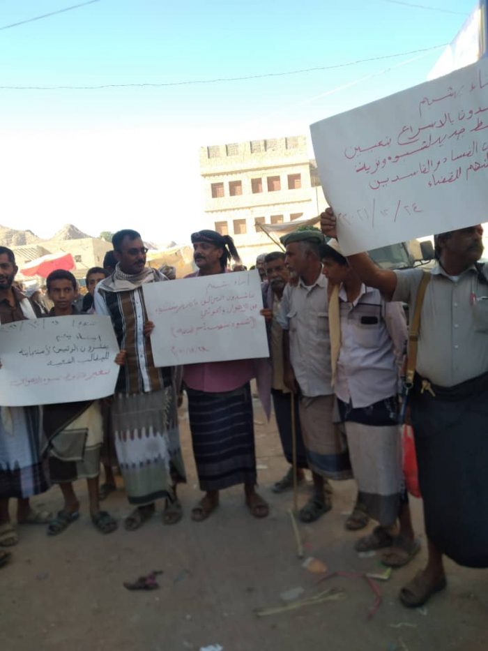 وطالب المواطنون، في الفعالية الاحتجاجية السلمية، بسوق يشبم، إلى إقالة المدعو بن عديو، ومحاكمته بتهمة الخيانة العظمى جراء تسليمه مديريات بيحان إلى مليشيات الحوثي المدعومة من إيران.