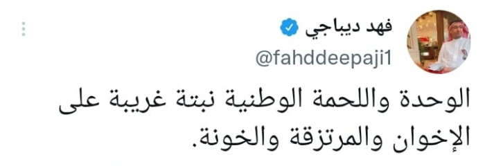 استنكر المحلل السياسي السعودي فهد ديباجي، رفض تنظيم الإخوان الإرهابي مفهوم الوطنية والوحدة.