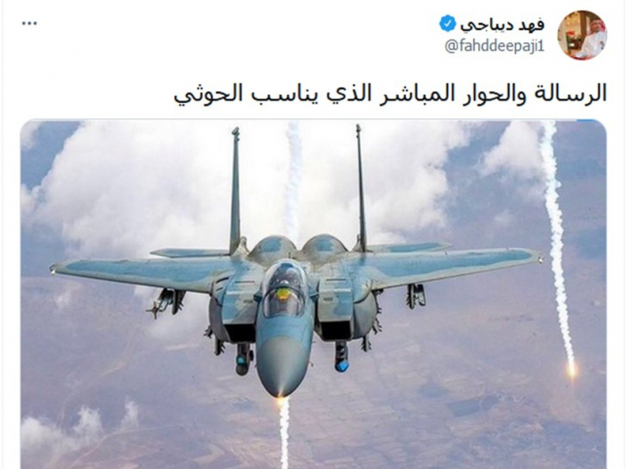 أوضح ذلك في تغريدة عبر "تويتر"، اليوم، قائلا: "الرسالة والحوار المباشر الذي يناسب الحوثي"، مرفقا تغريدته بصورة تعبيرية لمقاتلة تدك أهدافا.