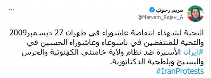 وجهت زعيمة المعارضة الإيرانية مريم رجوي، التحية لشهداء انتفاضة عاشوراء في طهران ضد نظام الملالي، التي اندلعت في ديسمبر 2009.