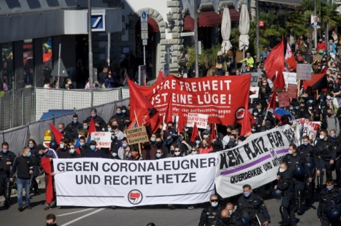 تظاهر عشرات الآلاف، في العديد من المدن الألمانية احتجاجا على قيود كورونا، مما أدى إلى أصابة عدد من ضباط الشرطة.