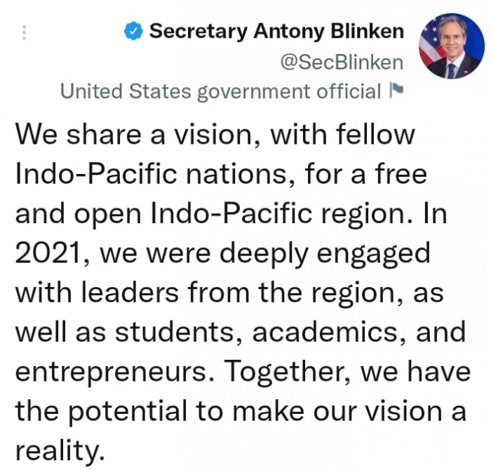 بلينكن: لدينا رؤية لمنطقة حرة بالمحيطين الهندي والهادئ