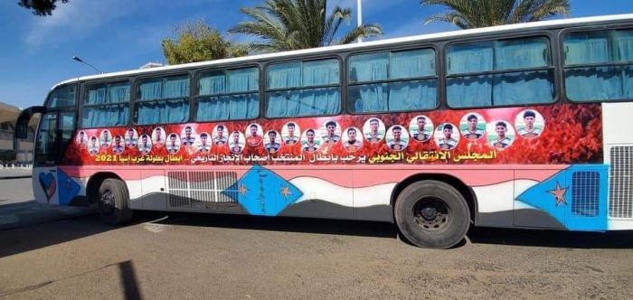 استقبال شعبي لأبطال كأس غرب آسيا بعلم الجنوب