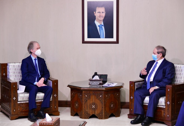 المقداد يبحث الأزمة السورية مع المبعوث الأممي لسوريا