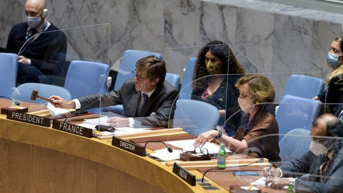 أكد ممثل فرنسا الدائم لدى الأمم المتحدة نيكولاس دي ريفيير، عزم بلاده فرض عقوبات قاسية على روسيا، إذا لم تتراجع عن اعترافها بجمهوريتي دونيتسك ولوغانسك، مُعلنًا تضامن بلاده مع أوكرانيا.