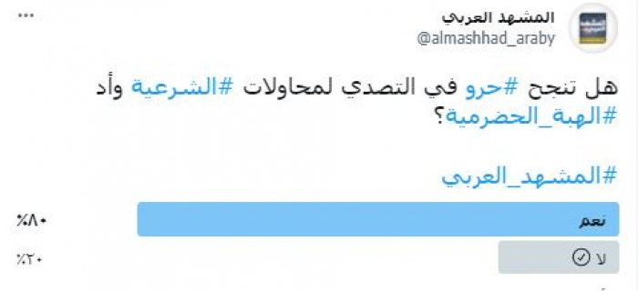 80% من قراء المشهد العربي يتوقعون نجاح حرو بحماية الهبة الحضرمية